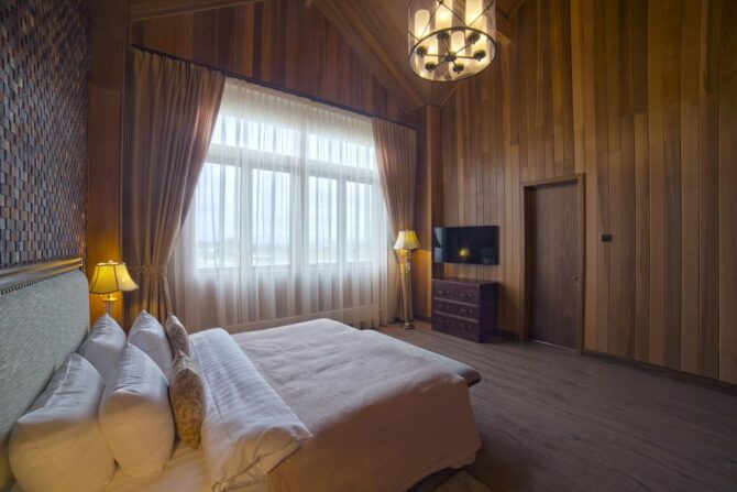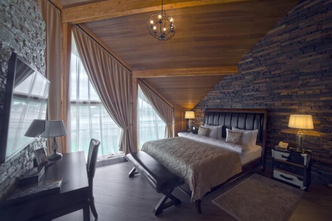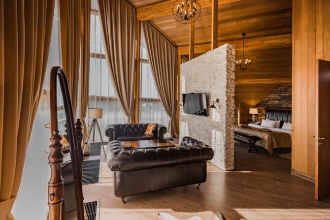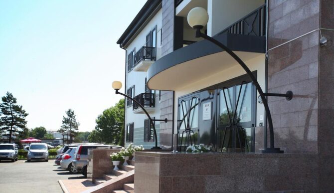 Если есть желание отказаться от шума и провести свободные часы в тишине и комфорте, то стоит заказать бесплатный трансфер в бутик-отеле «Кедровый дом». Он имеет статус 4 звезды и не имеющий аналогов в Приморском крае дизайн. Номеров всего 7, но они стоят того, чтобы в них поселиться: деревянная отделка из канадского кедра, натуральная кожаная мягкая мебель, домашний текстиль придают интерьерам особую фешенебельность. Место знаменито своим рестораном. Повар отдает предпочтение стейкам и блюдам из мяса, а также европейской кухне. Завтрак классический, континентальный. Расстояние до аэропорта составляет 2 км.
