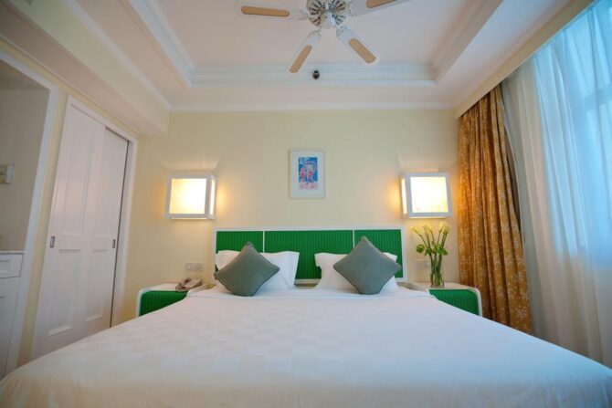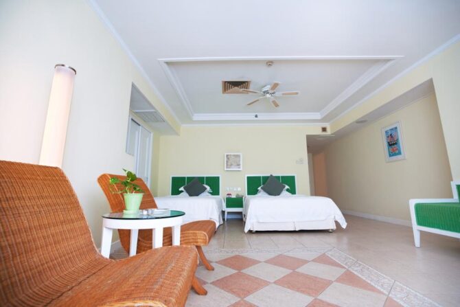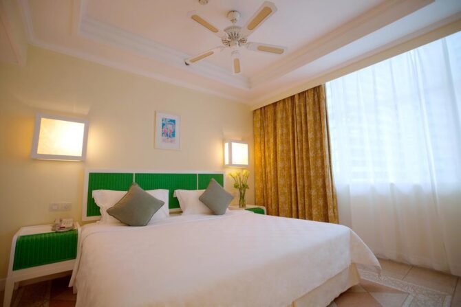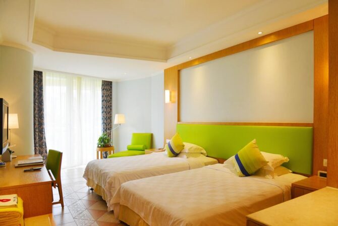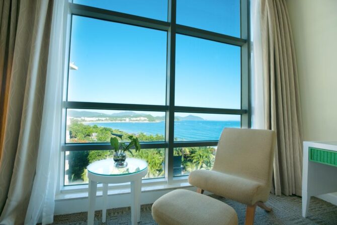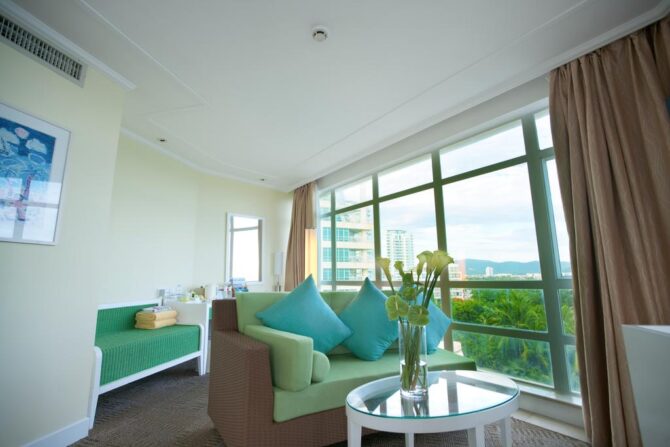 Пляжный отель высшей категории на 452 номера, расположенный на берегу залива Дадунхай и утопающий в зелени национального заповедника. Добраться сюда из аэропорта можно за полчаса езды, а поездка до центра города займет всего пять минут. Из окон современных номеров открывается прекрасный вид на сад, горы либо море. В каждом из них гостей ожидает обустроенная гостиная зона, телевизор с подключенным спутниковым телевидением, сейф и мини-бар.