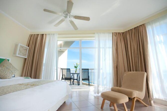 Все номера оснащены красивыми французскими окнами, из которых открывается захватывающий вид на океан либо на ландшафтный парк. К услугам постояльцев современный телевизор, беспроводной интернет, сейф, принадлежности для приготовления кофе или чая, а также тапочки, халаты и фен.
