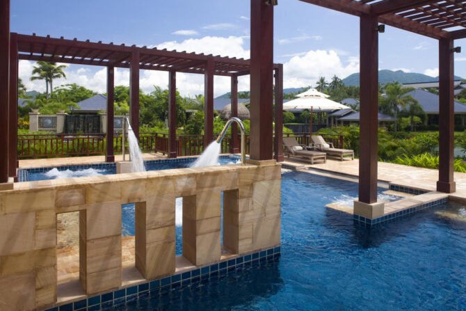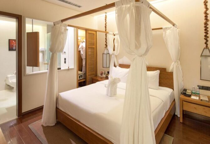 Люксовый спа-отель на 452 номера с почти полукилометровым персональным пляжем, расположенный в 30 минутах езды от международного аэропорта. Гости заселяются в эксклюзивные номера с собственными балконами, декорированные в ярком тропическом стиле и укомплектованные мебелью из дерева. Среди оснащения — система кондиционирования, современный телевизор и мини-бар.