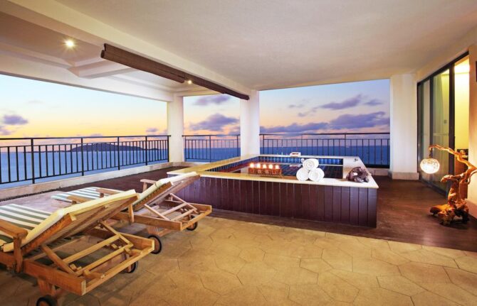 Гордостью отеля является шикарный спа-комплекс с бассейнами, площадь которых превышает три с половиной тысячи квадратных метров. А также здесь функционирует центр досуга, где можно позаниматься йогой, различными водными видами спорта, поиграть в теннис.