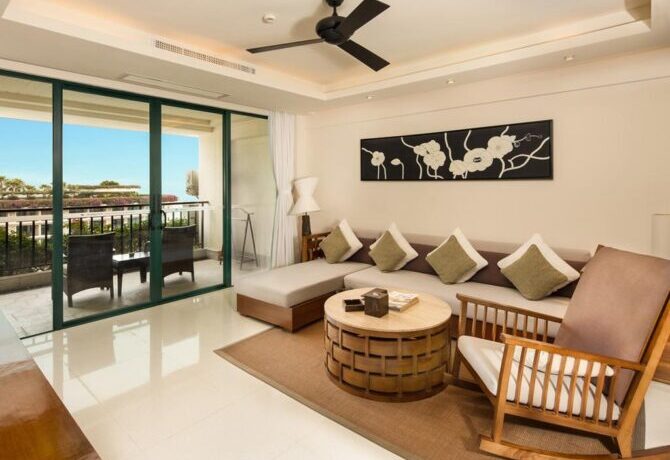 Просторные номера Mandarin Oriental, Sanya имеют собственные террасы и балконы, откуда открываются великолепные виды на сад или море. Комнаты обставлены классической мебелью из дерева, также для удобства постояльцев предусмотрены мягкие уголки с диванами.