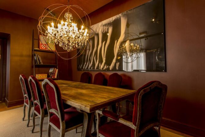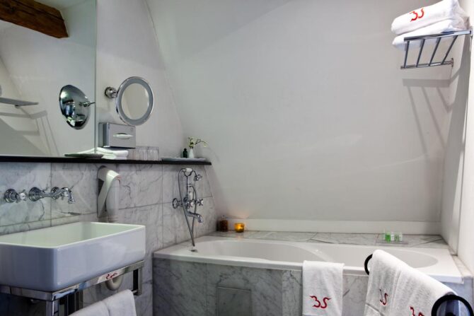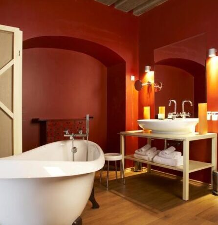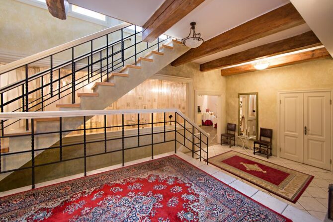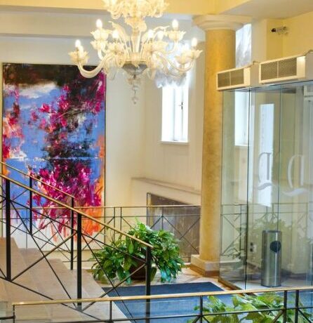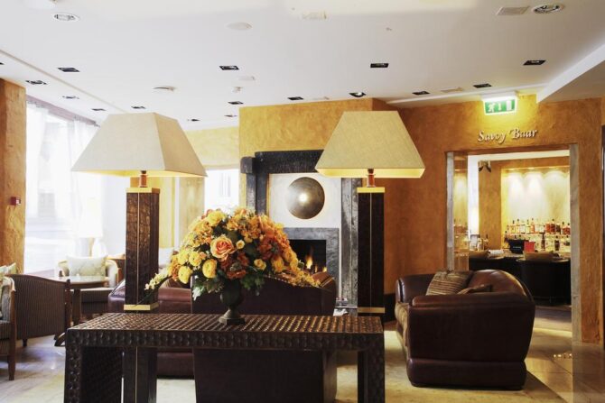 Отель занимает историческое здание постройки 14 в., а все интерьеры выполнены в аристократическом стиле и поражают своей роскошью. Залы и холлы отеля украшают картины и репродукции в тяжелых рамах. В декоре используют кованные и резные предметы, антикварные вещи, дорогие ткани. В восхитительных интерьерах гости обязательно почувствуют себя по-особенному, находясь в этом старинном здании.