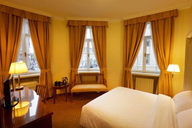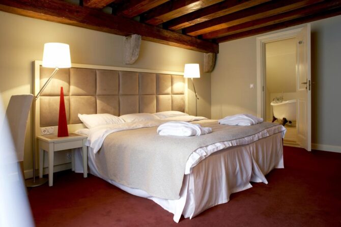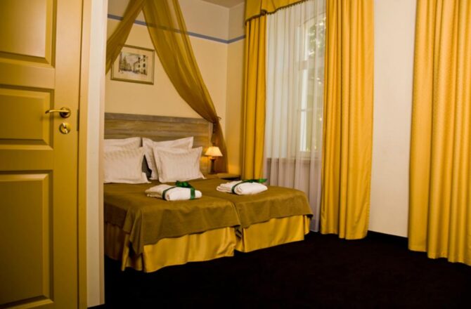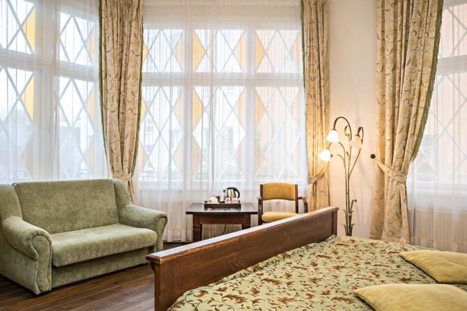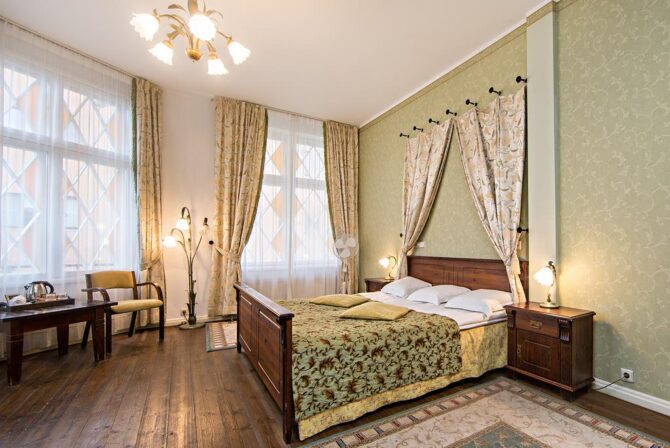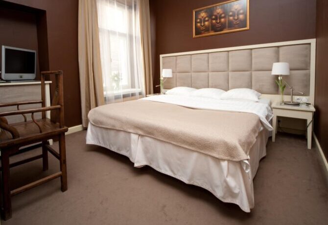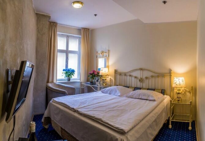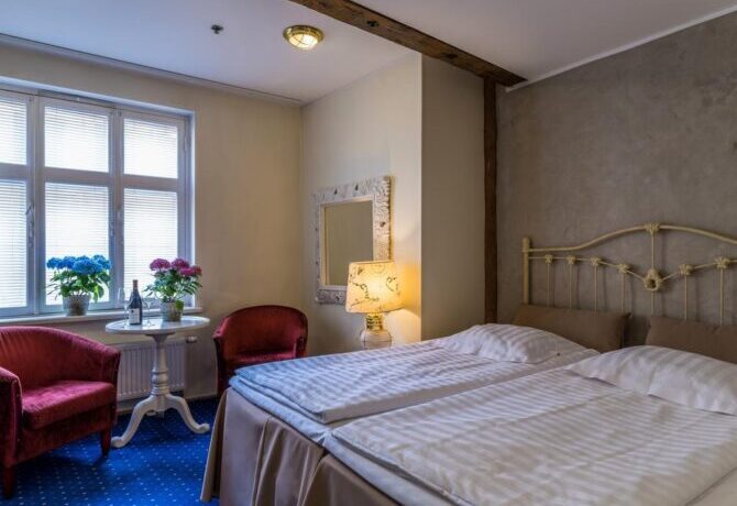 Отель занимает красивое архитектурное 4-этажное здание в сердце исторической части города рядом с Ратушной площадью. Для гостей предоставляется более 60 номеров уровня комфортности «стандарт» и «улучшенный». Все апартаменты просторны и оформлены в теплых тонах. Уютный интерьер и приятная атмосфера позволяют чувствовать себя особенно комфортно в номере, когда за окном бушует непогода или идет дождь. В комнатах есть не только удобная мебель, бар для охлаждения напитков и сейф, но и принадлежности для приготовления чая/кофе.