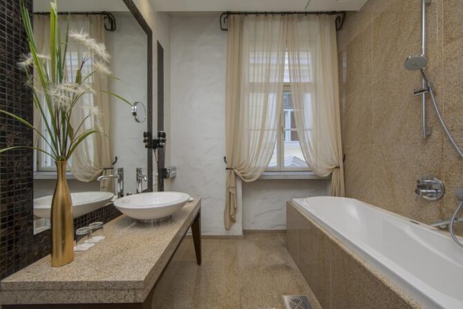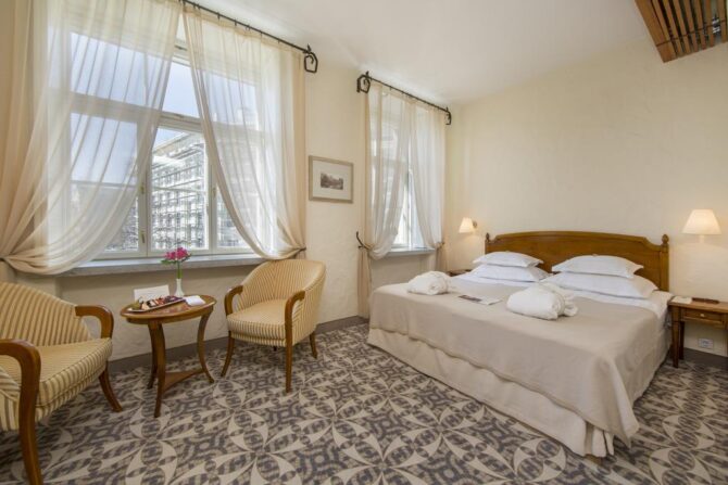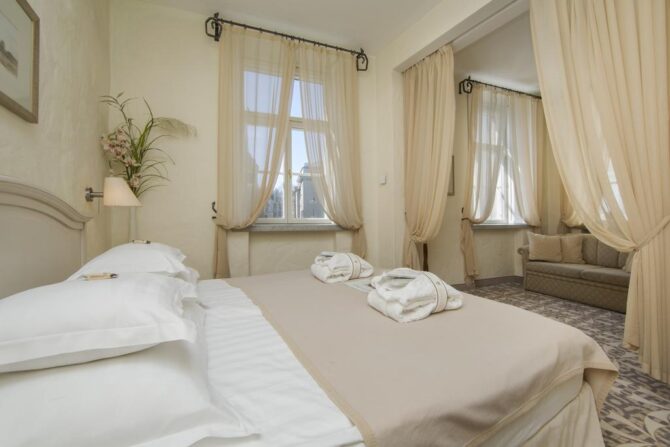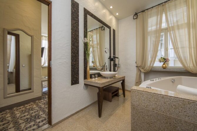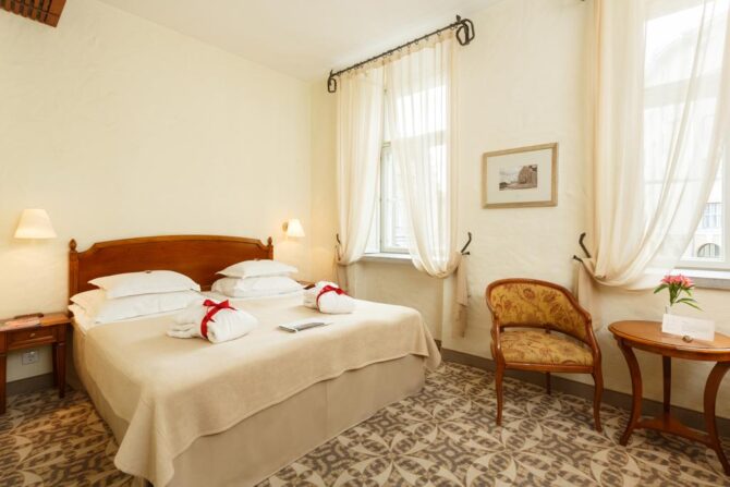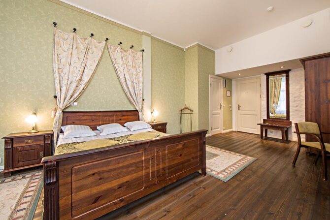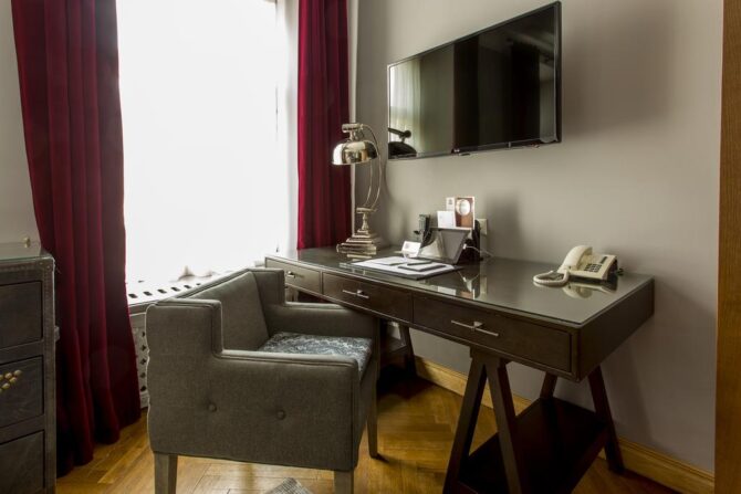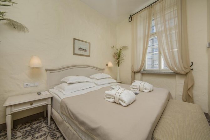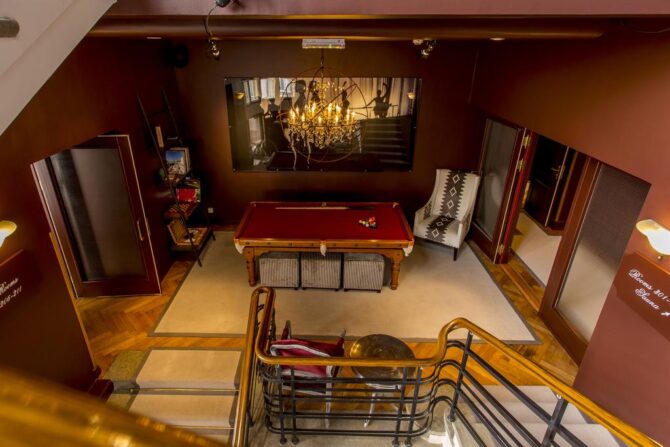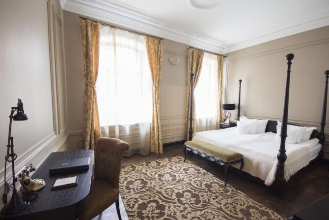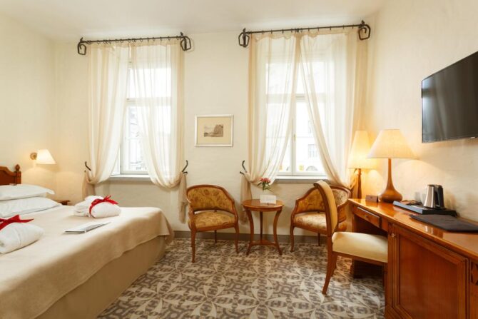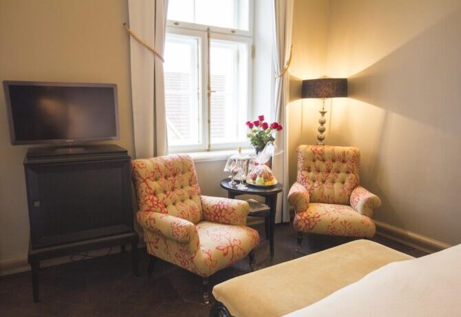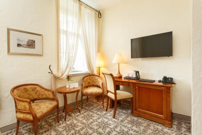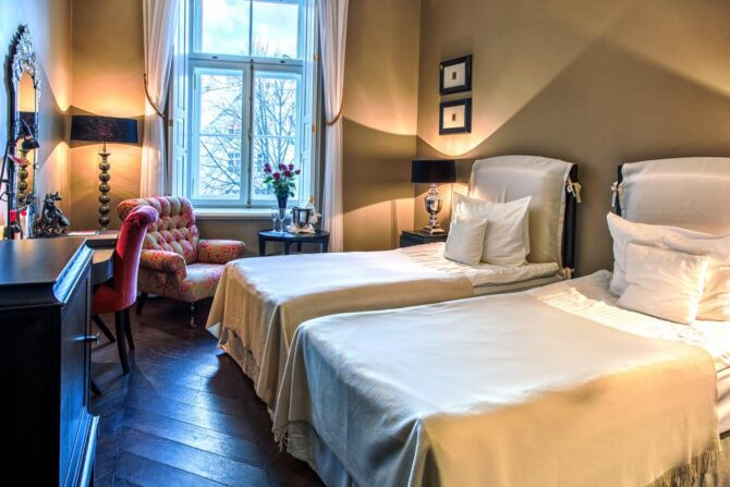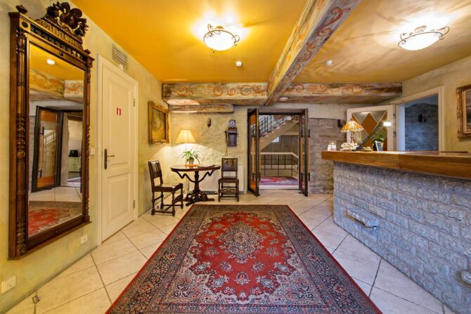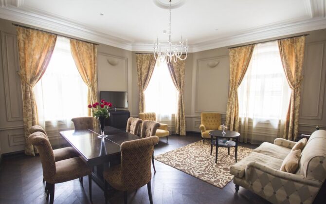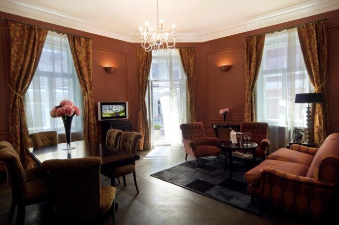 Отель расположен поблизости от пассажа Св. Екатерины и Ратушной площади и занимает историческое здание, которое было построено еще в конце 19 в. Дизайн номеров полностью соответствует общей концепции отеля, они оформлены в аристократическом стиле и обставлены мебелью ручной работы. Особое ощущение создают антикварные вещи, картины и зеркала в тяжелых рамах, роскошные портьеры.