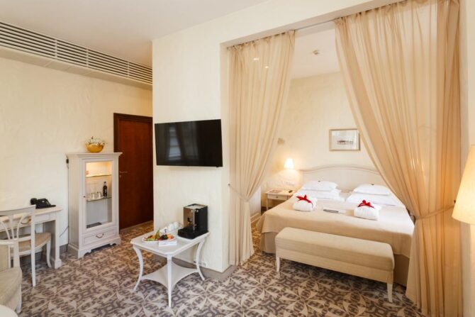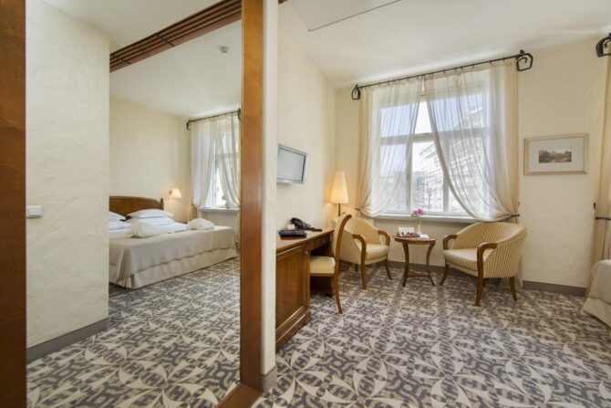 Отель Savoy в центре Таллина предлагает гостям города комфортный отдых в окружении достопримечательностей. Просторные светлые номера обладают необыкновенной аурой, которая позволяет чувствовать себя по-особенному, находясь в старинном городе. Все апартаменты обставлены красивой светлой мебелью в аристократическом стиле. Воздушность и легкость создают прозрачные элегантные шторы, а истинный комфорт – удобные диванные группы, выступающие в роли гостиной зоны. В каждом номере есть сейф, в котором можно хранить ценные вещи и ноутбук, а также мини-бар для охлаждения напитков.