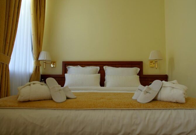 Современные, красиво оформленные номера отеля располагают качественной мебелью и санузлом. К услугам гостей ТВ, сейф и мини-бар. В Hotel Imperial можно провести время в сауне с гидромассажной ванной. Банные процедуры и массаж успокоят и помогут расслабиться после длительных прогулок и экскурсий.