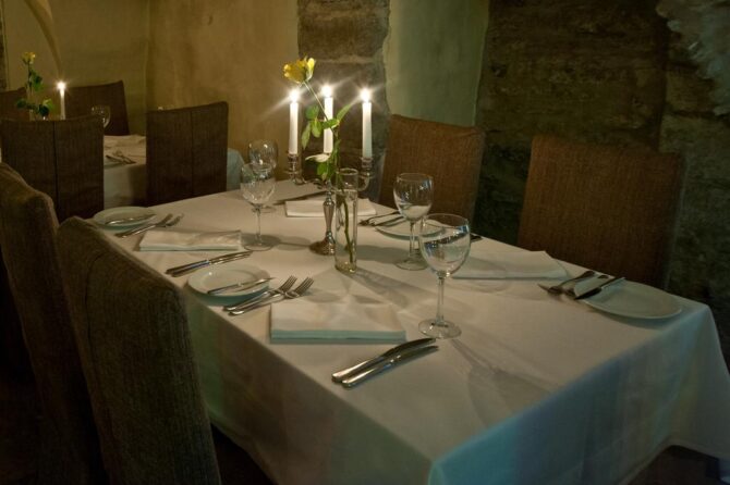 В подвале Schlossle Hotel, который когда-то давно служил винным погребом, находится ресторан отеля. Здесь каждое утро гости могут позавтракать и выпить бокал игристого вина. Заказать обед или ужин можно и в саду отеля в окружении зеленых растений и цветов. В стоимость проживания входит посещение сауны, где можно воспользоваться услугами массажиста.
