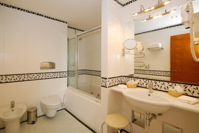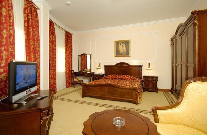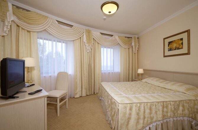 До пляжа можно дойти всего за 6 минут. Спа-отель «Довиль» расположен в Анапе, в 500 метрах от песчаного пляжа на берегу Чёрного моря. К услугам гостей открытые бассейны, тренажерный зал и детская игровая площадка. Элегантные номера оформлены в теплых тонах в современном стиле. В распоряжении гостей телевизор с плоским экраном, холодильник и собственная ванная комната с халатами, тапочками и феном.
