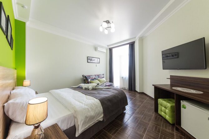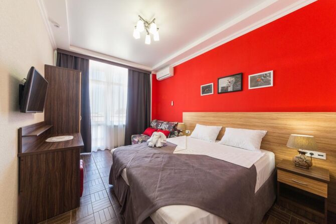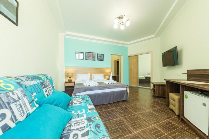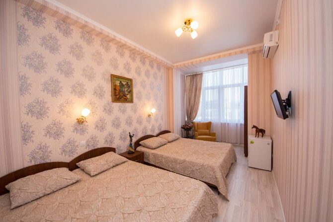 До пляжа можно дойти всего за 4 минуты. Отель Альбатрос находится в Анапе, в 200 метрах от побережья Черного моря. К услугам гостей открытый бассейн, сауна, бильярд, массаж, а также бесплатный Wi-Fi. Элегантные номера оформлены в классическом стиле с использованием теплых оттенков и оснащены кондиционером. В каждом номере есть кондиционер, телевизор с плоским экраном, холодильник, балкон и собственная ванная комната.