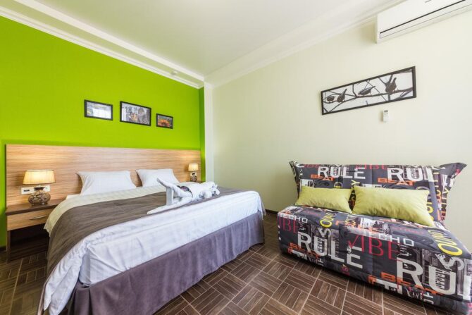 «Очень понравился отель! Обязательно вернемся еще! Он небольшой, очень уютный, в нем есть все, что нам было нужно. Порадовало наличие бассейна (целых 10х4 метра). Отель предоставляет мангал. В самом здании есть кулер с водой, по желанию предоставили утюг и гладильную доску. Размещение очень удачное: около отеля находится луна-парк, множество ресторанов и кафешек. Небольшой минус – это плохая шумоизоляция, которая, однако, не сильно нам мешала».