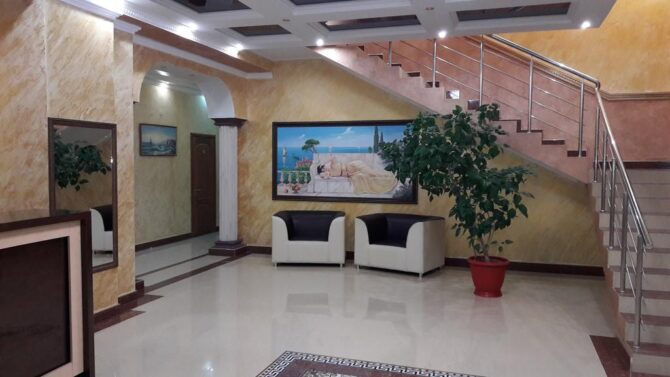«Очень удачное положение. В отеле есть лифт, чем он выгодно отличается от других отелей в Анапе. Хороший завтрак, ежедневно приносят в номер воду и предметы гигиены. Скидки в кафе и ресторане 15% для проживающих. Чистота. Чайник в номере тоже удобно».