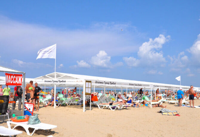 Гости отеля могут отдыхать в шезлонгах и плавать в открытом плавательном бассейне или в Черном море. До аквапарка «Тики-Так» можно дойти за 3 минуты. На пляже имеется волейбольная площадка.Отель «Гранд Прибой» расположен в 150 метрах от автобусной остановки, откуда можно без пересадок добраться до железнодорожного вокзала Анапы и центра города. Поездка до аэропорта Анапы занимает 30 минут.