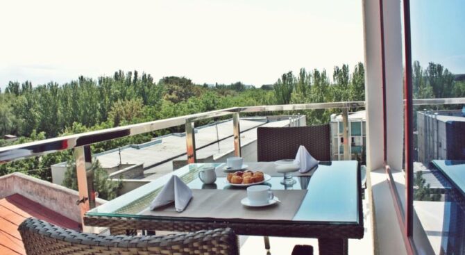Futuro Hotel Bishkek предлагает своим гостям насладиться прекрасным видом на город с его летней террасы, воспользоваться сервисом проката велосипедов, а также посетить собственную библиотеку отеля.