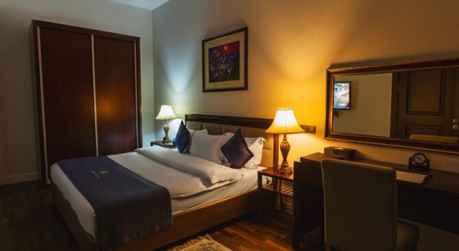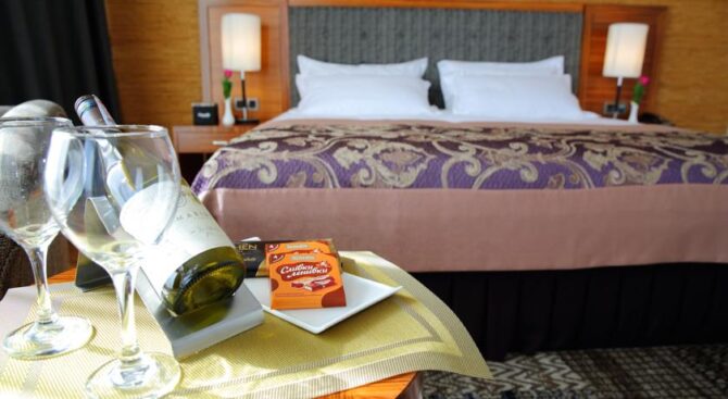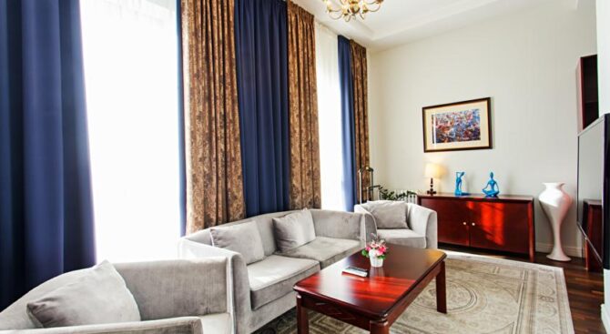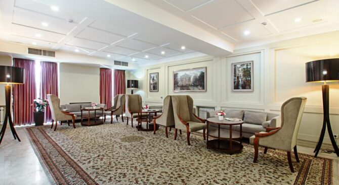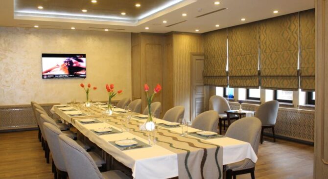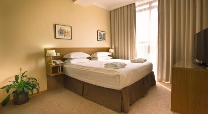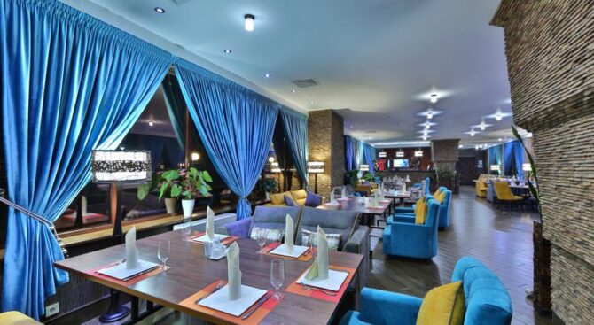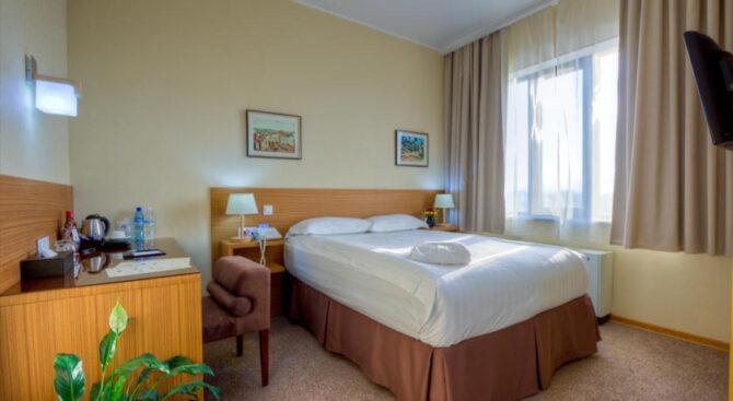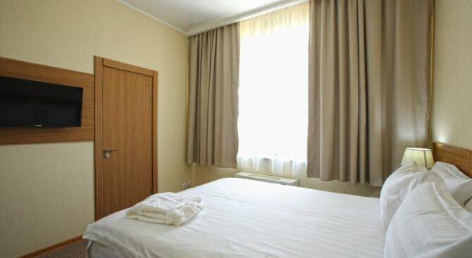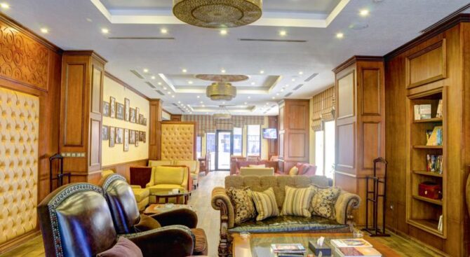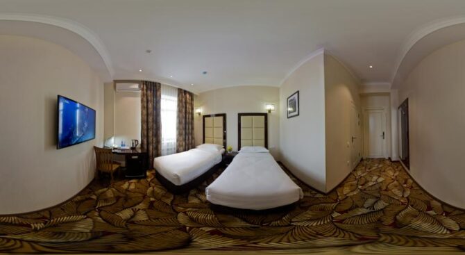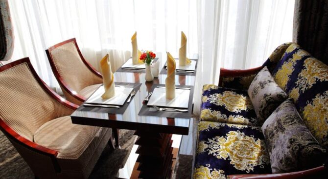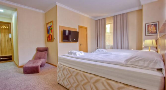 Этот большой четырехзвездочный отель славится своим спа-салоном, в котором вы можете не только насладиться сауной и массажем, но и выбрать более изысканные процедуры. В Парк Отеле Бишкек 67 номеров, каждый из которых выполнен в классическом стиле. В номерах есть все для комфортного отдыха: телевизор, чайник, мини-бар, сейф, косметические принадлежности.