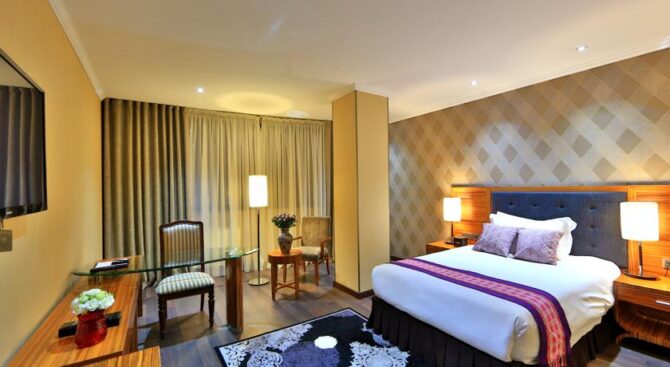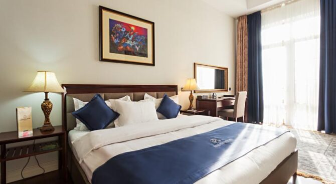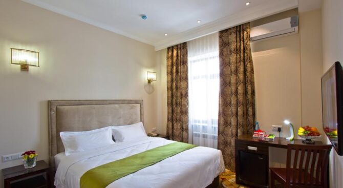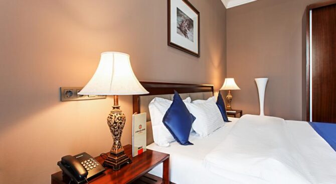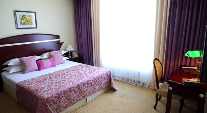 Golden Tulip Bishkek Hotel предоставляет качественный сервис при его приемлемой стоимости. К услугам гостей 64 номера разного уровня комфорта, в каждом из которых есть телевизор, кондиционер, мини-бар, сейф, а также чайные и косметические принадлежности. Номера обставлены в изысканном классическом стиле.