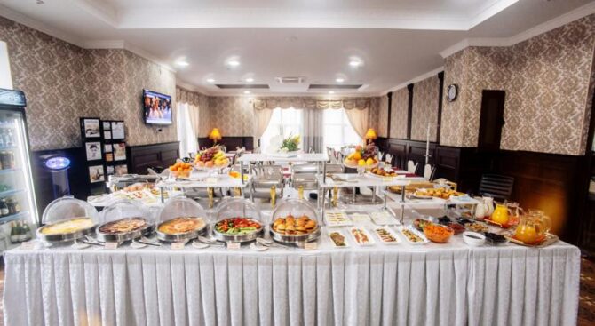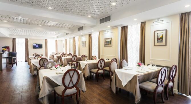 В ресторане каждое утро сервируют завтрак по типу «шведский стол», а на обед и ужин можно заказать блюда а-ля карт. В ресторане подают исключительно европейскую кухню. Около отеля находится небольшая частная парковка.