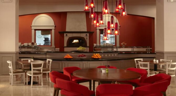 В ресторане можно полакомиться всевозможными блюдами французской, итальянской, ливанской, а также местной кухни. Каждое утро для гостей сервируется завтрак по типу «шведский стол». Около отеля находится частая парковка.