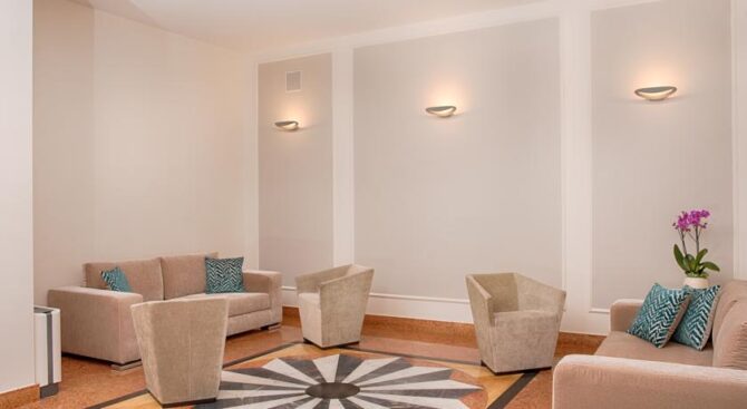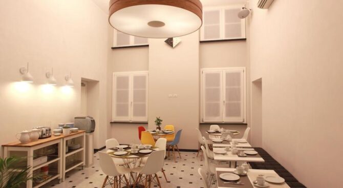 В элегантной гостиной-столовой по утрам постояльцев приглашают к завтраку, а в течение всего дня можно спуститься сюда и в спокойной обстановке выпить чай или кофе. Выбрав для жизни в Генуе Hotel Le Nuvole Residenza d’Eposa, можно быстро добраться отсюда до аэропорта, что очень важно для путешественников.