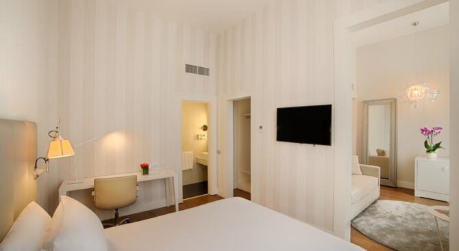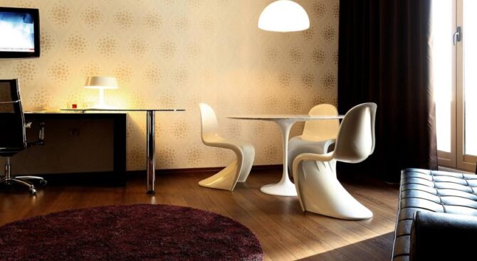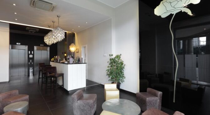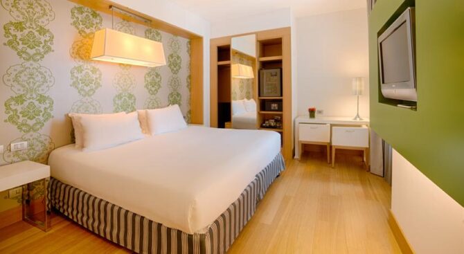 Элегантный современный отель со стильными интерьерами, выполненными в единой черно-белой гамме. Все номера отлично оснащены, чтобы даже в поездке гости могли чувствовать себя максимально комфортно. Есть ТВ, кондиционер, удобная современная мебель.