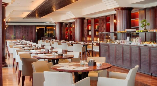 В отеле гостей встречает ресторан, где повара предоставляют возможность иностранцам познакомиться с национальными блюдами и напитками. Здесь же по утрам сервируют завтраки в формате «шведский стол».
