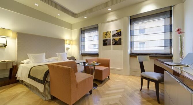 Великолепный отель расположен на территории гавани. Для своих постояльцев здесь предлагают номера разного уровня комфортности от «стандарт» до «люксов» и семейных апартаментов. Все комнаты очень светлые и обставлены современной классической мебелью. Но не классический стиль и красивый ремонт в номерах становятся определяющими для туристов, выбирающих NH Collection Genova Marina, а его расположение.