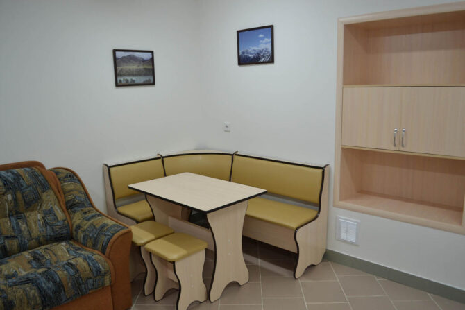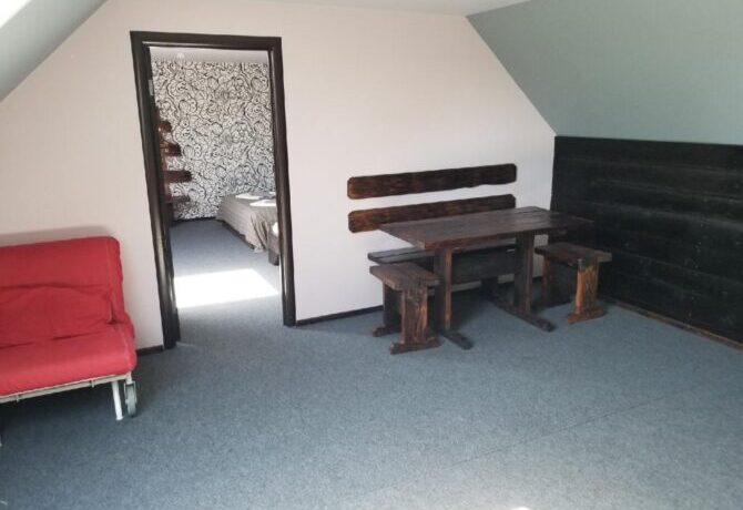 Мини-гостиница расположена по пути в Горно-Алтайск (3 км от аэропорта по Чуйскому тракту). Она работает в формате хостела, предоставляя для расселения места в общих номерах или двухместные отдельные номера. Гостиная, обеденная зона, кухня, душ и санузел общего пользования. Животные не допускаются. Для курения оборудованы специальные места. По запросу предоставляются услуги доставки еды и напитков, побудка в нужное время, стирка и глажение. Из аэропорта лучше заказать такси, автобусные остановки находятся далековато. Зато рядом с отелем работают несколько кафе: «Евразия», «Подсолнух» и «Любимый» (в одноименном отеле).