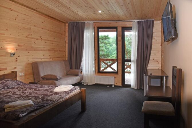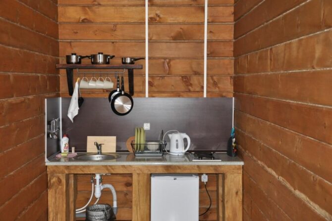 «Обратите внимание на то, что площадь домиков маленькая, реально на двоих. Если ехать с детьми, то лучше заказать домик-панораму. Он просторнее. Домики деревянные, в дождливую погоду в них тоже влажно. Одежда не успевает просохнуть, появляется специфический запах. По большому счету цена не соответствует комфорту. Может не быть горячей воды. Кафе приятное, меню небольшое, цены адекватные» Марина, Россия