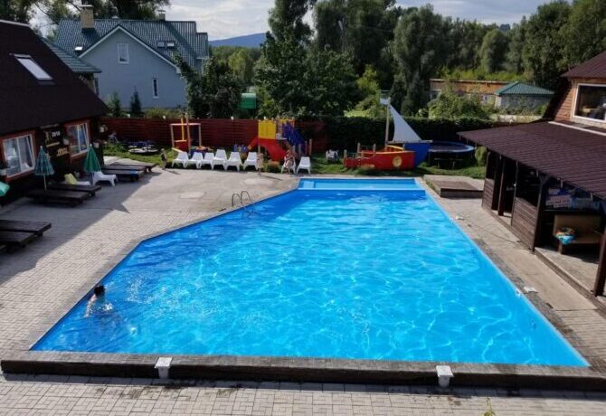 База отдыха находится в селе Ая на берегу Катуни. Это место позиционируется, как идеальное для семей с детьми. Для маленьких посетителей здесь открыты Детский клуб, Пиратская мастерская, игровой лабиринт, 4 бассейна, один из них с водными горками. Пока дети развлекаются, родители могут провести время в Бухабаре, где кроме алкогольных напитков есть довольно приличное меню. Завтрак с утренним кофе накрывается в открытой беседке (летом). Нюансом при заселении является обязательное наличие детей. Без них могут не предоставить место для ночлега. Курение на территории отеля строго запрещено. В 23.00 – отбой, как в детском лагере. С животными нельзя. База работает только в летний сезон.