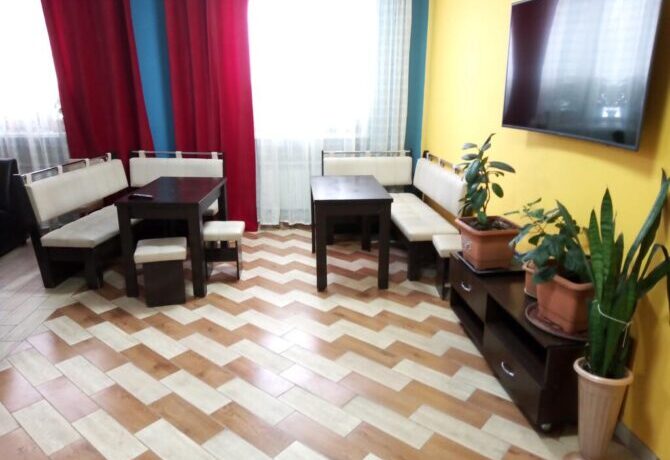 «Веселый интерьер, приятный персонал. Для того, чтобы переночевать, подходит. В хостеле есть все необходимое для приготовления пищи, сна. Основные постояльцы – вахтовики, туристы-альпинисты и горнолыжники. Если в хостеле полно людей, то очень шумно. Чтобы уснуть, придется использовать беруши. А так цена полностью соответствует качеству» Дарья, Россия