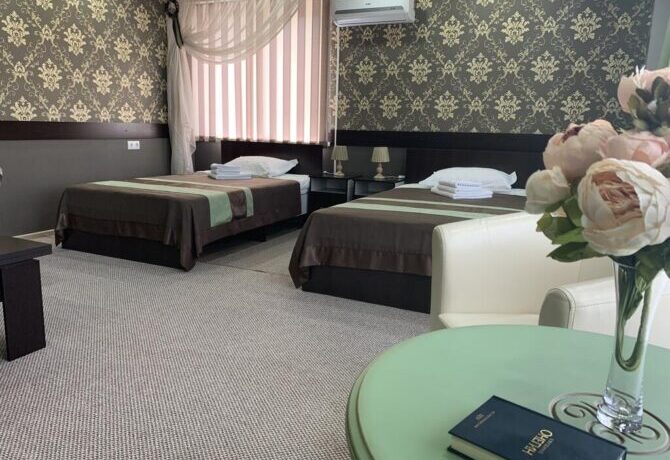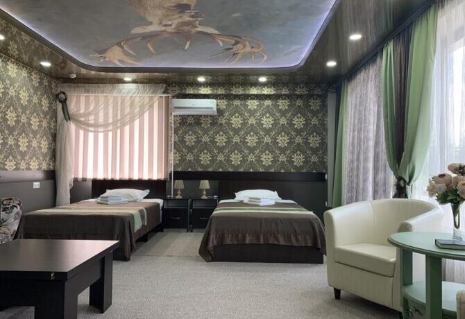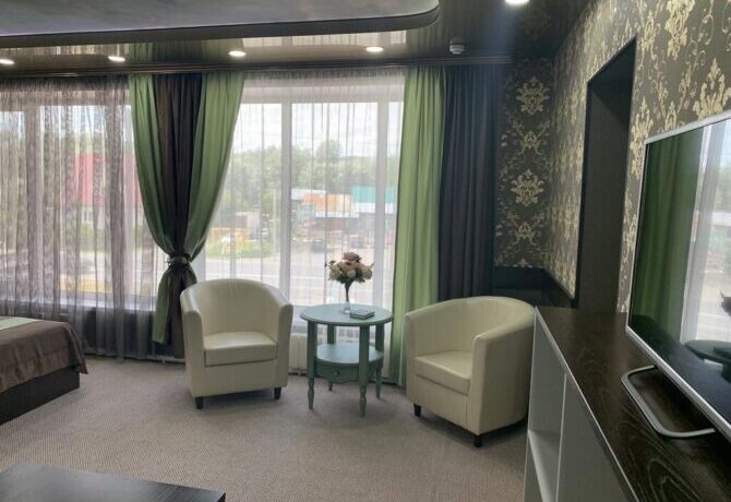 Трехэтажный отель находится в Горно-Алтайске (6 км от аэропорта). Окна недорогих гостиничных номеров выходят на березовую рощу. В некоторых из них есть полностью оборудованные кухни. Санузел общий на этаже. Во дворе оборудованы детская площадка, зона для пикника. Летом устанавливается каркасный бассейн. За размещение домашних животных дополнительная плата не взимается. Трансфер от/до аэропорта оплачивается отдельно. Ближайшая автобусная остановка находится в 5-ти минутах ходьбы. Чуть дальше расположены кафе, рестораны, продуктовые магазины.