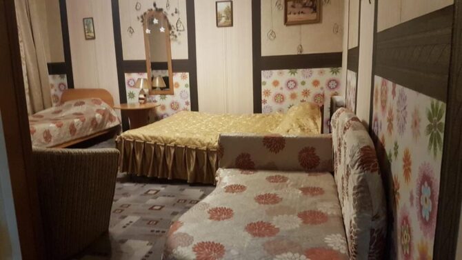 «Бревенчатый дом, общий санузел и душевая, добродушная хозяйка, готовая в любое время оказать помощь. Принимает с животными. У самой есть питомцы – щенки и черепахи. По вечерам хозяева разводят костер посреди двора, возле которого собираются все постояльцы. Для шашлыков есть отдельная зона со всеми приспособлениями. По близости есть кафе и магазины» Игорь, Россия