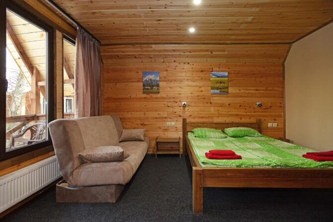 Гостевой дом расположен в поселке Катунь (6 км от аэропорта). Для размещения предоставляются двух, трех, четырех местные и семейные номера. За проживание животных плата не взимается, но предварительная договоренность необходима. Завтрак подается по меню, но может быть включен в оплату проживания. Летом во дворе гостиницы устанавливается каркасный бассейн. До горнолыжного подъемника – 1 км. Есть сауна и терраса на свежем воздухе. Для детей поставлена песочница и батут.