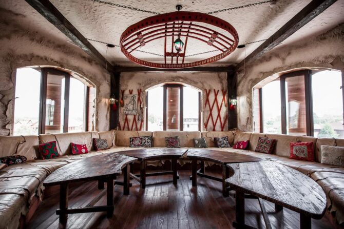 «Хорошее место на природе. Есть куда сходить, где покушать. Кроме ресторана на базе, в округе достаточно других кафе, где цены значительно ниже, а кухня не уступает по качеству. По оформлению номера и двора видно, что персонал очень любит это место. Всюду много интересных скульптур, аккуратные газоны, ухоженные деревья. Здесь приятно прогуляться перед сном. Но больше всего нам с друзьями понравилась большая юрта посреди двора. На ее фоне можно сфотографироваться, а затем внутри соорудить небольшой пикничок» Оксана, Россия