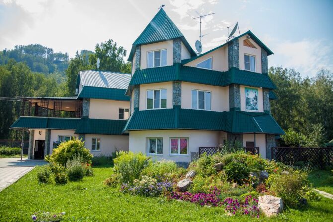 На живописном берегу реки Катунь в поселке Ая расположен гостевой дом, входящий в туристический комплекс «Алтайский Дом туризма». В одноэтажном здании с мансардой предлагаются двух и трех местные номера (всего 5 номеров). Холодильник пока один на первом этаже. Никаких развлечений на территории не предусмотрено. Все объекты для организации досуга находятся в округе: парк аттракционов, природные достопримечательности, рыбалка, прогулки. До аэропорта на такси – 30 минут. Можно приезжать с питомцами.