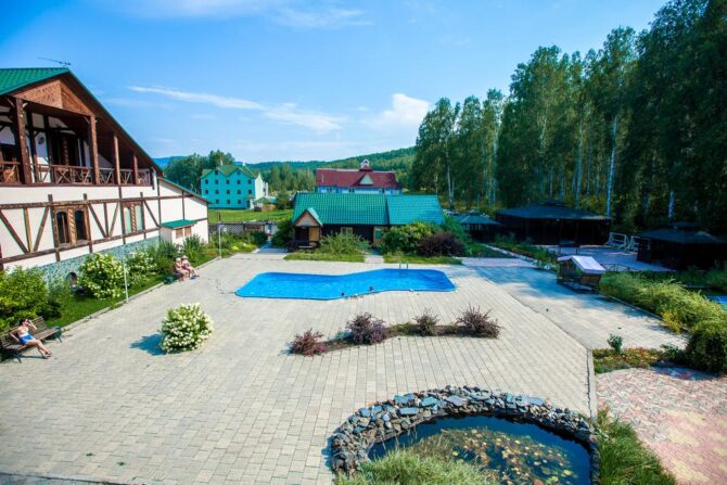 Туристический комплекс расположен в 6 км от аэропорта в селе Ая. Это всего в 2-х км от горнолыжного курорта «Гора Веселая» и озера Ая. При желании можно посетить местные достопримечательности, расположенные в радиусе 20 км от отеля: искусственный подогреваемый водоем «Бирюзовая Катунь», Тавдинские пещеры, первое казино Сибирской игровой зоны Altai Palace. Если нет желания куда-либо ехать, то развлечений хватит и на территории базы: детская игровая площадка, бассейны взрослый и детский, русская баня с купелью, зона для организации пикника – для отдыха гостей предусмотрены все удобства. Постояльцев расселяют в главный корпус, состоящий из 15 номеров. Все они стилизованы под отдельные мировые культуры. Ни один из интерьеров не повторяет друг друга. Летом работает еще один трехэтажный корпус, в котором оборудовано 30 стандартных номеров. На территории работает ресторан, в котором можно заказать питание.