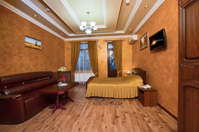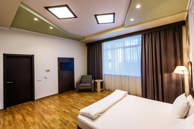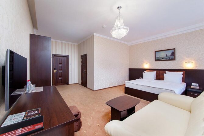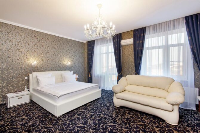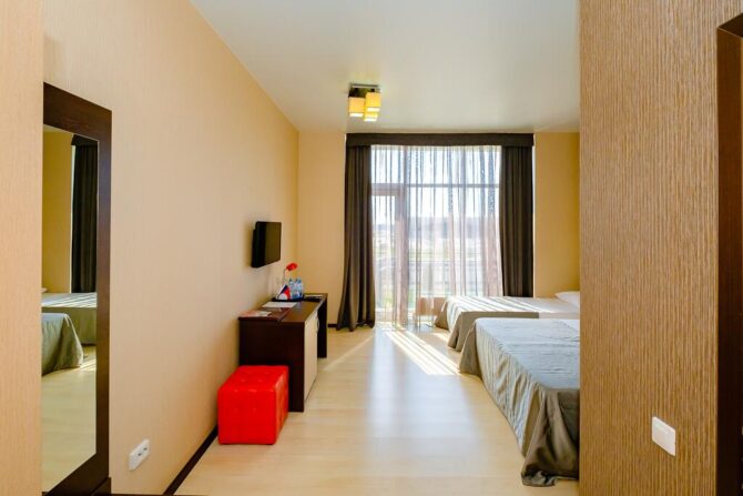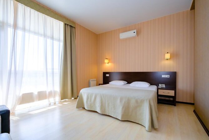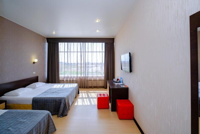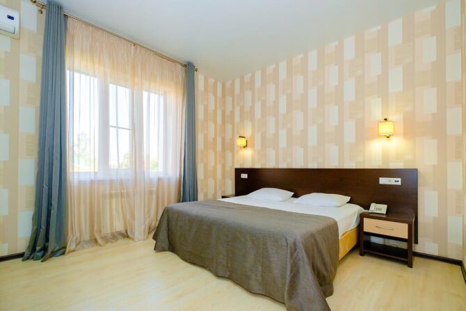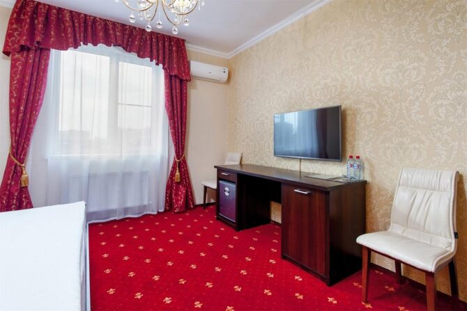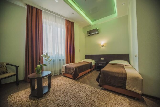 3-звездочный отель расположен в 5-ти минутах езды от международного аэропорта Пашковский. Для размещения гостей подготовлены 22 номера, оформленные в стиле Hi-Tech, от стандартов до люкса. На кроватях – ортопедические матрасы, хлопковое белье, антиаллергенные подушки. В здании есть ресторан, бар, оздоровительный центр с тренажерным залом, сауной и бассейном. В центре работает профессиональный медперсонал, который предлагает постояльцам пройти сеанс хромотерапии. Это бесконтактный метод лечения или достижения состояния релакса с помощью света и подбора цветовой палитры. В номерах установлен климат-контроль, есть сейф для ценных вещей.