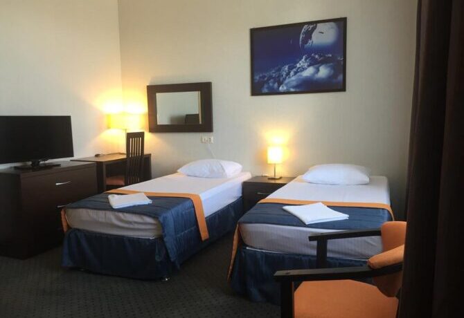 «В отеле предлагается завтрак. В номере чисто. Цена проживания ниже ожидаемой. Еда в кафе «Аэлита» нормальная, без изысков. Недалеко от аэропорта. В округе есть, где погулять. В отеле работает прокат велосипедов» Евгений, Россия