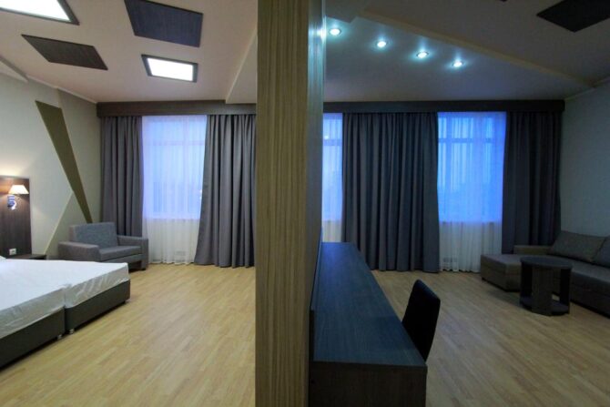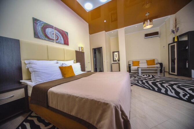 В 4-х минутах езды от аэропорта, напротив РЦ OZ расположен комфортабельный отель в собственной спа-зоной. Для размещения гостей предлагаются 27 номеров, среди которых есть бюджетные, стандартные, делюксы, семейные и люксы с джакузи. К услугам постояльцев: фитнес-зал, спа-комплекс с сауной и большим бассейном (посещение входит в оплату проживания), трансфер, прачечная – аквачистка с течение 3-х часов. На территории работает Арт-кафе. Утром подается континентальный завтрак.