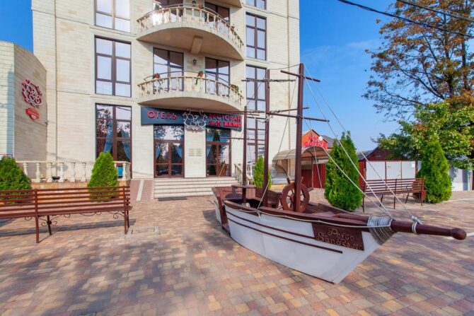 Бизнес-отель специально разработан для приема деловых людей. Это проект компании «Русский дом» для людей, ценящих комфорт и домашний уют в деловых поездках и путешествиях. Он находится в микрорайоне Пашковский в нескольких минутах езды от аэропорта. Для расселения предоставляются семейные, стандартные номера, делюксы и люксы. В здании открыт ресторан «Санремо» и Ресто-бар. Утром накрывается континентальный завтрак. За него лучше заплатить при заселении, получится дешевле, чем при оплате утром в ресторане. Из аэропорта можно доехать на троллейбусах № 7 и 9 до остановки «улица Мачуги» или заказать такси.