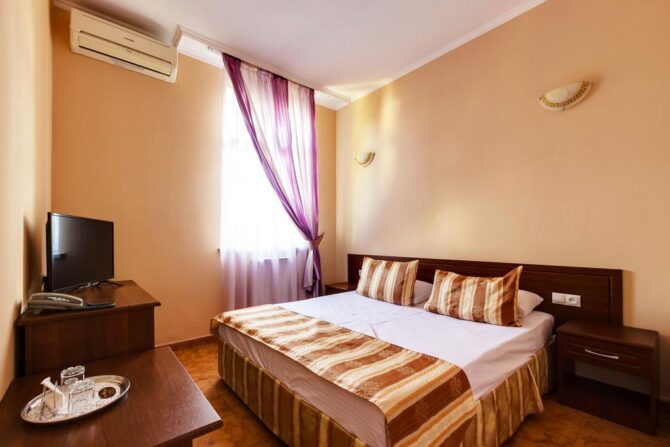 «Светлый классический номер с традиционным интерьером и кондиционером. Есть ванная комната. Услуга бесплатного трансфера и оповещения о рейсах оказалась очень полезной. Персонал вышколенный, вежливый, всегда готов оказать помощь» Елена, Россия