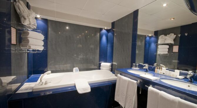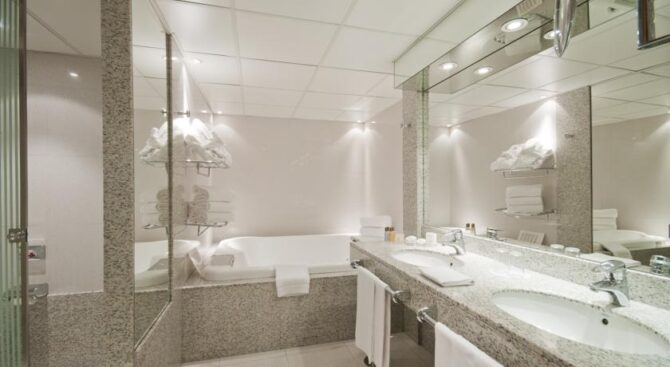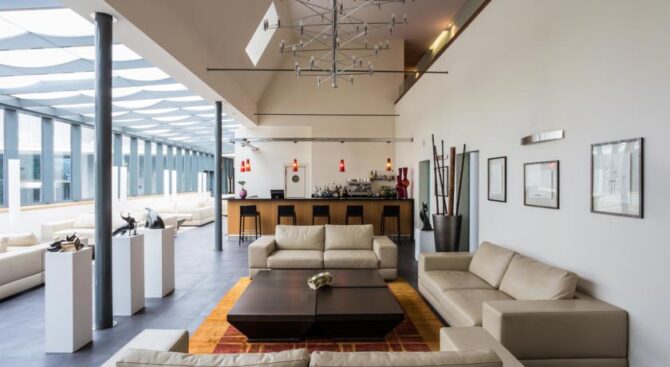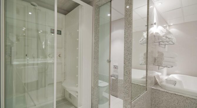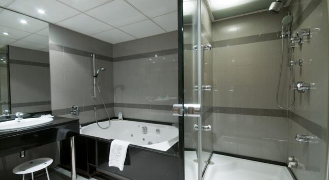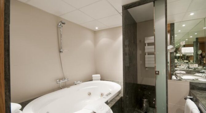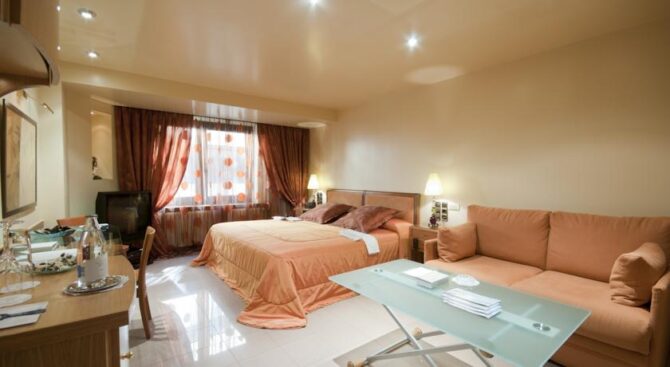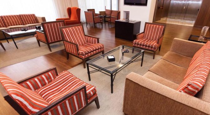 Отдохнуть за чашечкой кофе или бокалом игристого вина стоит в лаундже с камином. Желающим получить расслабляющие процедуры по нраву придётся спа-салон с хаммамом, сауной и баней. Массажные процедуры можно заказать дополнительно. В заключение можно насладиться впечатляющей трассой для загара либо отправиться тренироваться в фитнес-центр. Бизнес-центр представляет собой несколько просторных залов размещающих не менее 100 человек.