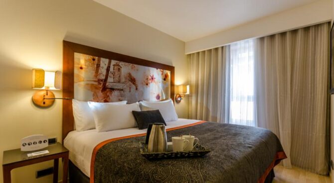 В ресторане гостиницы можно отведать блюда национальной и французской кухни. Вина и напитки включены в стоимость блюд. В баре можно насладиться необычными коктейлями и снеками. В спа-салоне комплекса предоставляют весь комплекс расслабляющих услуг, различные виды массажа, сауну и солярий. В фитнес-центре всегда есть возможность позаниматься с тренером. Проведение деловых переговоров проходит в бизнес-центре и конференц-зале на 100 мест.
