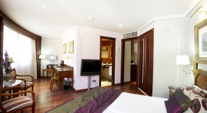 Из окон чудесного тематического ресторана Plató открывается чарующий вид на реку. Авторская кухня порадует своей оригинальностью и непревзойдённой гаммой вкусов. В ресторане Gallery можно не только насладиться отличным завтраком, но и воочию лицезреть величественные Пиренеи, через витражные окна. На территории гостиницы можно вдоволь понежиться в спа-салоне, получить курс массажных процедур или посетить сауну с хаммамом. Для деловых встреч предназначено сразу же несколько конференц-залов.