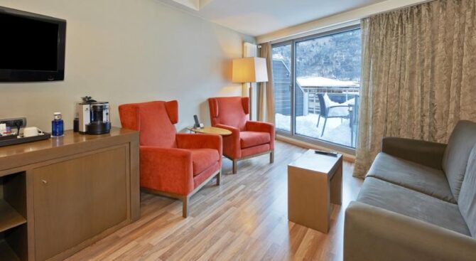 На Avinguda Doctor Mitjavila, 1, AD500 расположился современный гостиничный комплекс Hesperia Andorra. Номера оборудованы отличной мебелью, позволяющей расслабиться после длительных лыжных трасс. Каждый объект оснащён всеми коммуникациями и техникой. При желании можно воспользоваться мини-баром. Практически из каждого номера есть выход на превосходную террасу с видом на Пиренеи. Завтрак можно заказать дополнительно за небольшую плату. По необходимости его доставляют в номер.