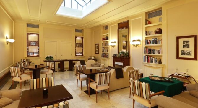 В просторном лаундже Avenida Palace по утрам сервируется богатый шведский стол с огромным выбором блюд. А также в гостинице есть специальный лаундж для тех, кто любит проводить время за выкуриванием сигары и бокалом какого-нибудь крепкого напитка. Для тех, кто даже во время отдыха не представляет себя без чтения, имеется библиотека с шикарной подборкой книг на различных языках. Поклонники здорового образа жизни могут посетить тренажерный зал с разнообразным оборудованием.