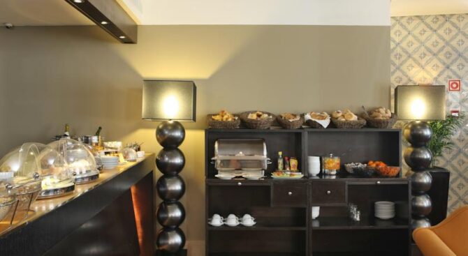 Утолить голод можно либо в специальном зале для завтраков, либо заказав доставку еды прямо к себе в номер. Те гости, которым хочется чего-то более изысканного, могут посетить находящий по соседству ресторан Varanda Lisboa. Здесь приятным бонусом к блюдам традиционной португальской кухни станет захватывающий вид на город. Отличным завершением вечера станет беседа со старыми или уже приобретенными друзьями за бокалом местного вина или портвейна на открытой террасе бара Jony Rules.