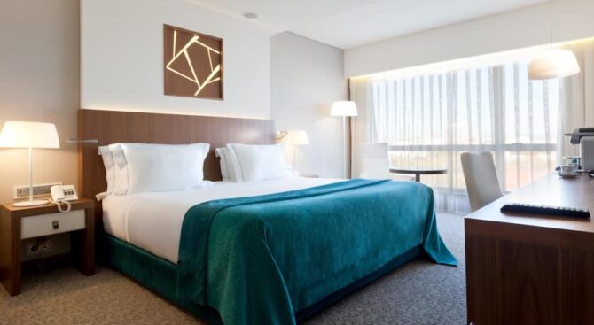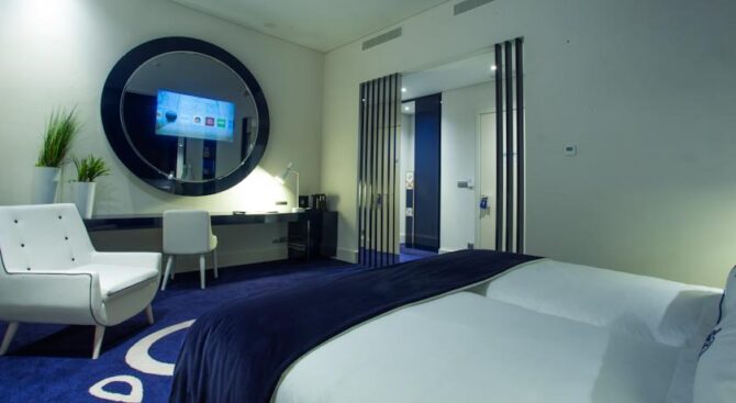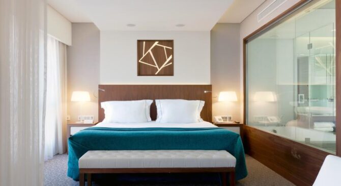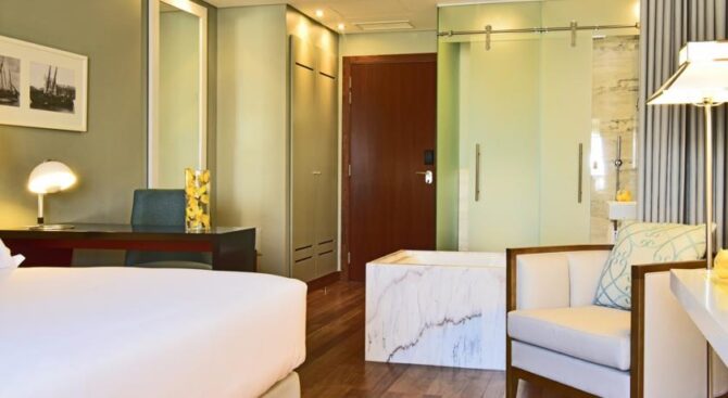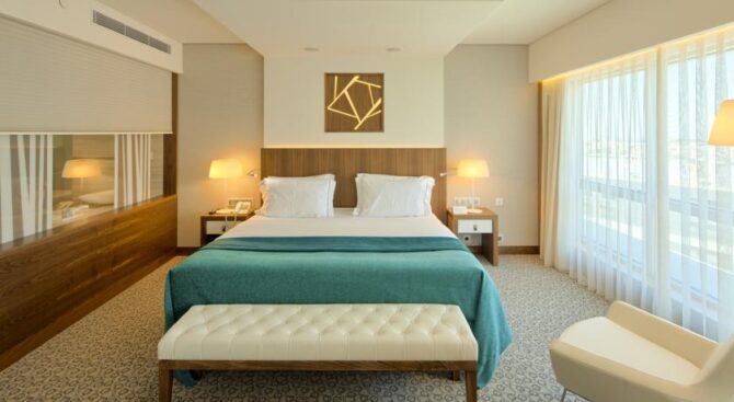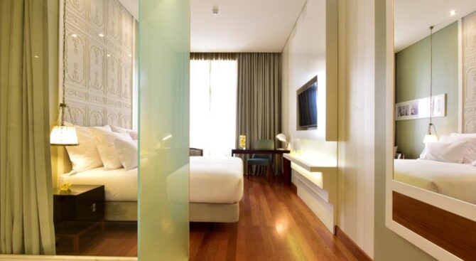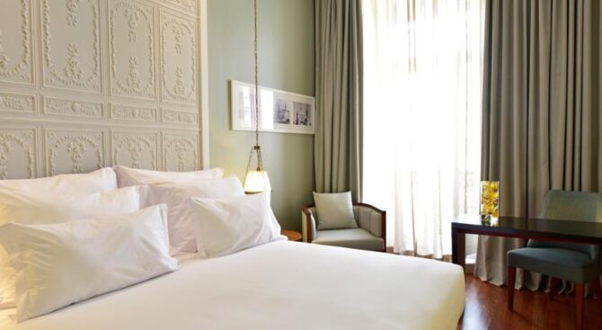 Современные номера оборудованы удобной мебелью и качественной техникой, в ванной комнате есть все необходимые принадлежности, включая косметику от ведущих брендов. Из окон номеров, расположенных на верхних этажах здания, открываются захватывающие дух виды на старинный город, реку Тахо и знаменитый замок Святого Георгия.