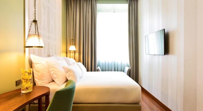 Неординарный четырехзвездочный отель, оформленный в стиле ар-деко, открывает свои двери постояльцам в тихом районе Санто-Антонио и при этом совсем неподалеку от оживленного проспекта Авенида-де-Либертаде. Отсюда можно прогуляться пешком, насладившись красотами старого города, а можно воспользоваться услугами метро, расположенного всего в трех сотнях метров от гостиницы, и добраться практически до любого места за считаные минуты.
