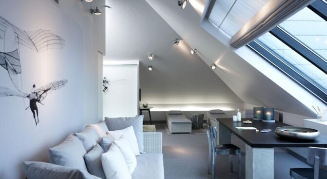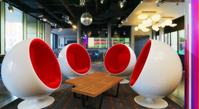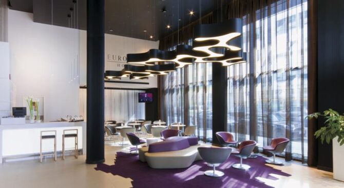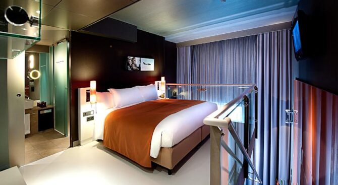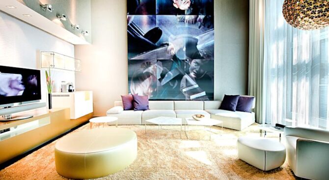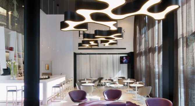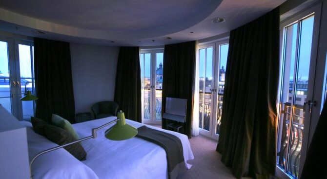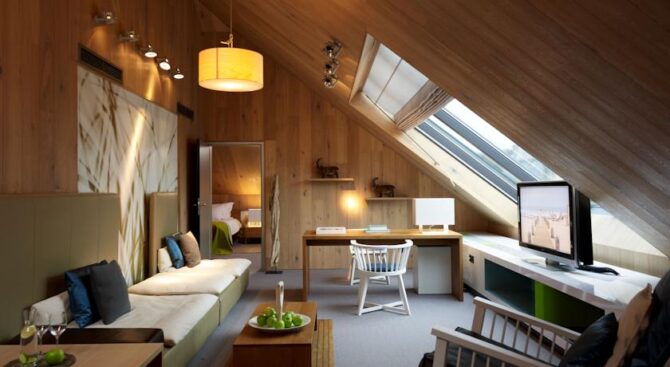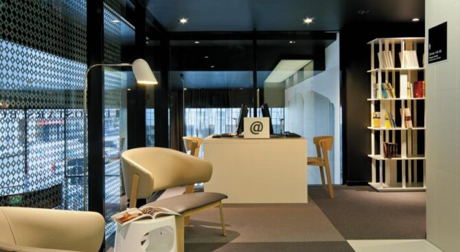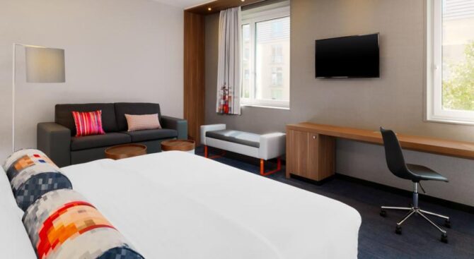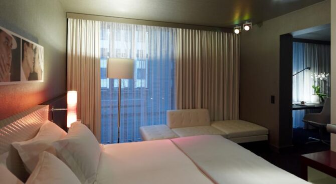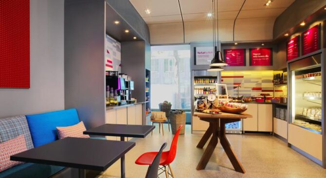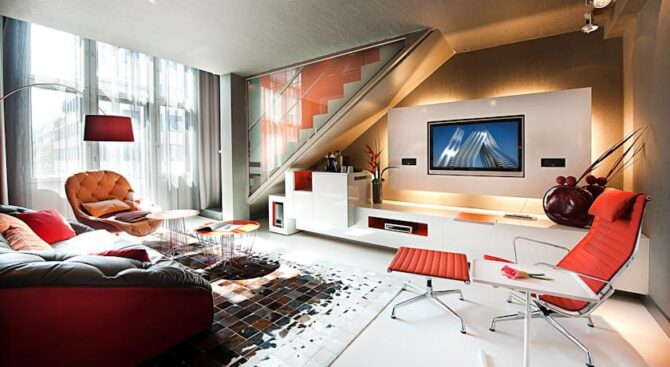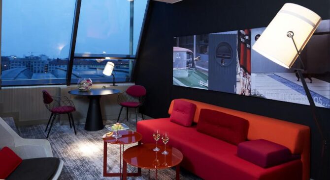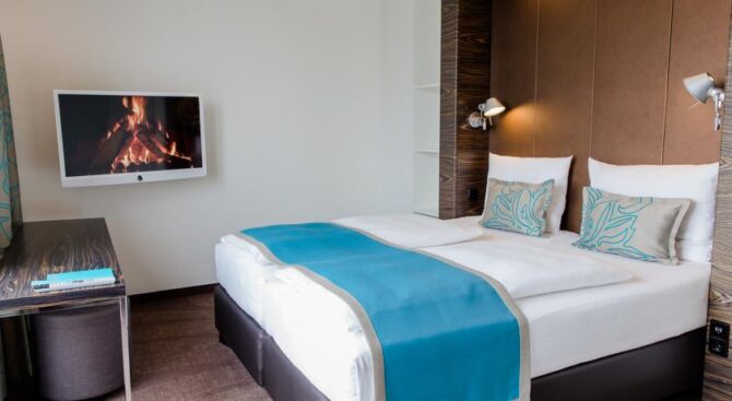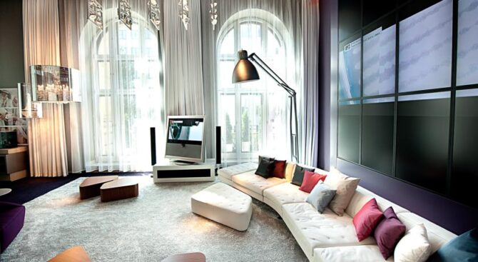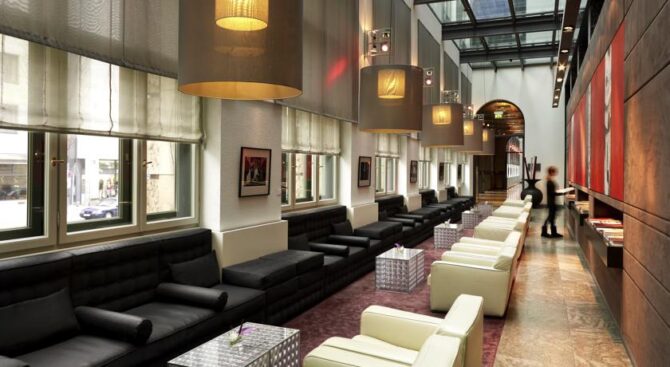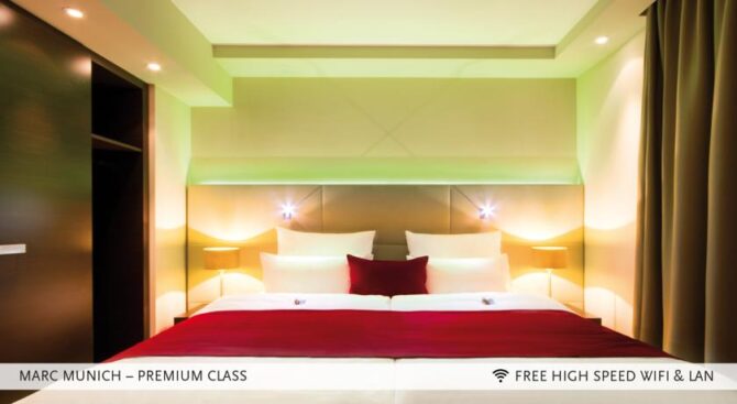 Ценители необычных ощущений от цветового восприятия в дизайне по достоинству оценят необычный и очень стильный интерьер номеров этого отеля в центре Мюнхена. Большие номера оформлены в ярких тонах и обставлены дизайнерской мебелью. Ряд номеров позволяют любоваться окрестностями через большие окна от пола до потолка.
